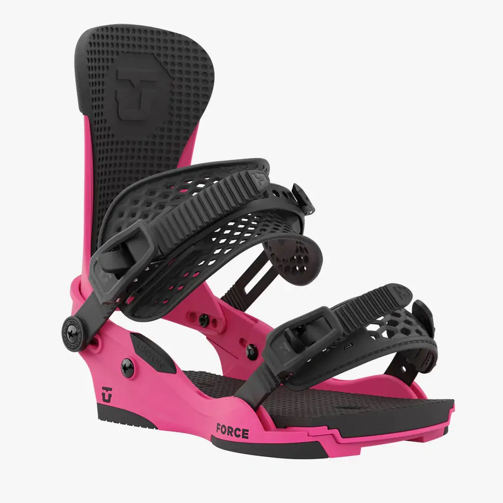 The Force comes with Union’s camber disk and thus works with 4 hole or channel fitting boards.