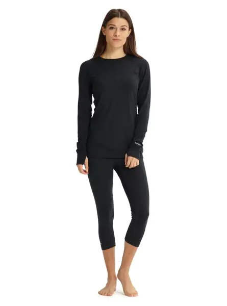 The womens Burton Midweight Capri Pant is made with the cotton-like comfort of DRYRIDE Ultrawick Midweight 200 fabric thats scientifically engineered to pull heat-robbing sweat away from your skin and propel it through your outer layers.