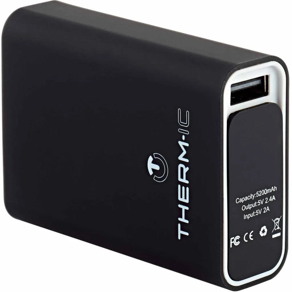 The Thermic powerbank battery offers a powerful 5200 mAh which is more than adequate for keeping you Thermic Powervest warm and toasty. The 4 blue LEDs smart lights indicate the remaining capacity of the charger.